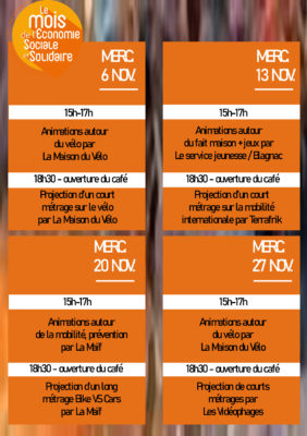 - 18h30 : Projection Bikes versus cars par la Maïf. Discussion animée par La Maison du Vélo.