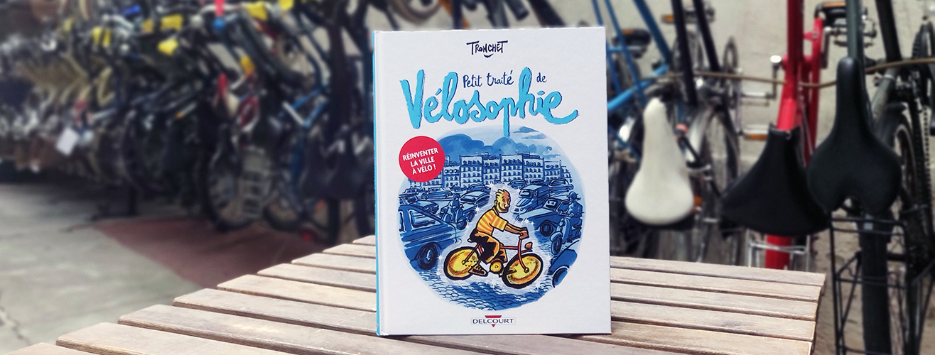 Tronchet décline en version BD son fameux Traité de vélosophie paru en 2000. En une cinquantaine de planches, on retrouve son ton à la fois tendre et parfois pinçant. Il célèbre les joies du vélo en ville, l’apaisement que procure le pédalage, égratignant franchement les automobilistes au passage, mais sans se départir pour autant d’une belle teinte d’autodérision face aux crevaisons ou à la transpiration.
