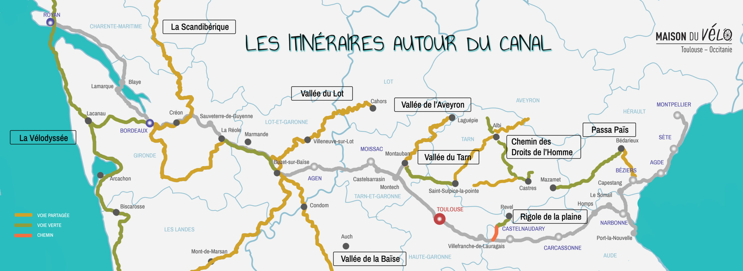 Sur devis, la Maison du Vélo vous propose des livraisons et une option rapatriement des vélos tout au long du canal des 2 mers.